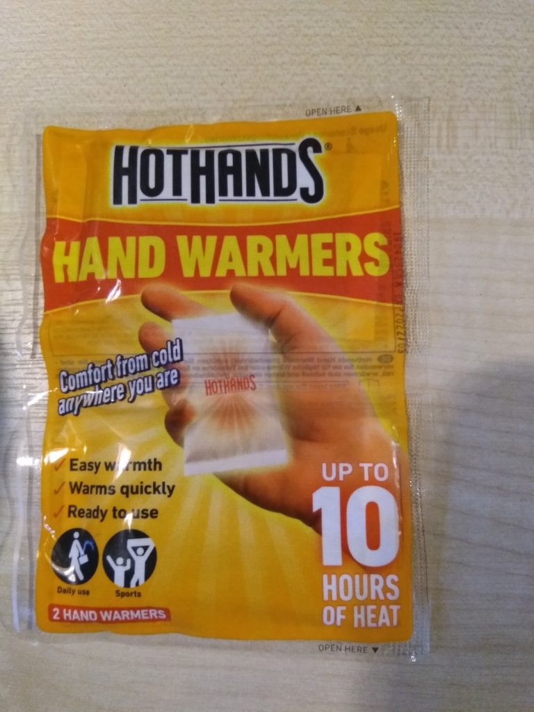 On really cold days these came into their own. Once the pack is opened they stay warm for up to eight hours. They can be pushed into gloves, or even wellies.