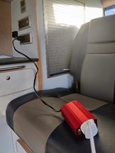 The inverter plugged into the cigarette style socket allowed me to recharge the scooter from the leisure battery whilst off grid.