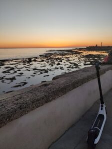 Cadiz – Lovely city. It’s compact for getting around the tourist sites and a great vibe with people on the beach and promenade watching the sunset. Scooter users of all ages, even inside Mcdonalds!